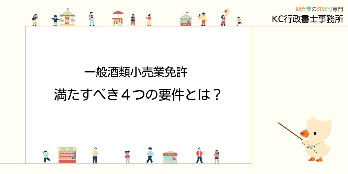 以上が一般酒類小売業免許の申請において満たすべき4つの要件となります。