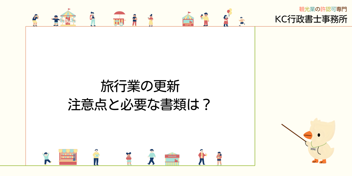 更新というとただ書類を1~2枚提出するだけの簡単な手続きに思ってしまいますが、旅行業の場合、更新の際も新規登録とほぼ同等の書類を準備する必要があります。更新時には基準資産額の条件を満たしている必要があるなど、事前の準備をしておかなければ更新の申請が受理されない可能性もあるため、新規の登録以上に注意しなければなりません。